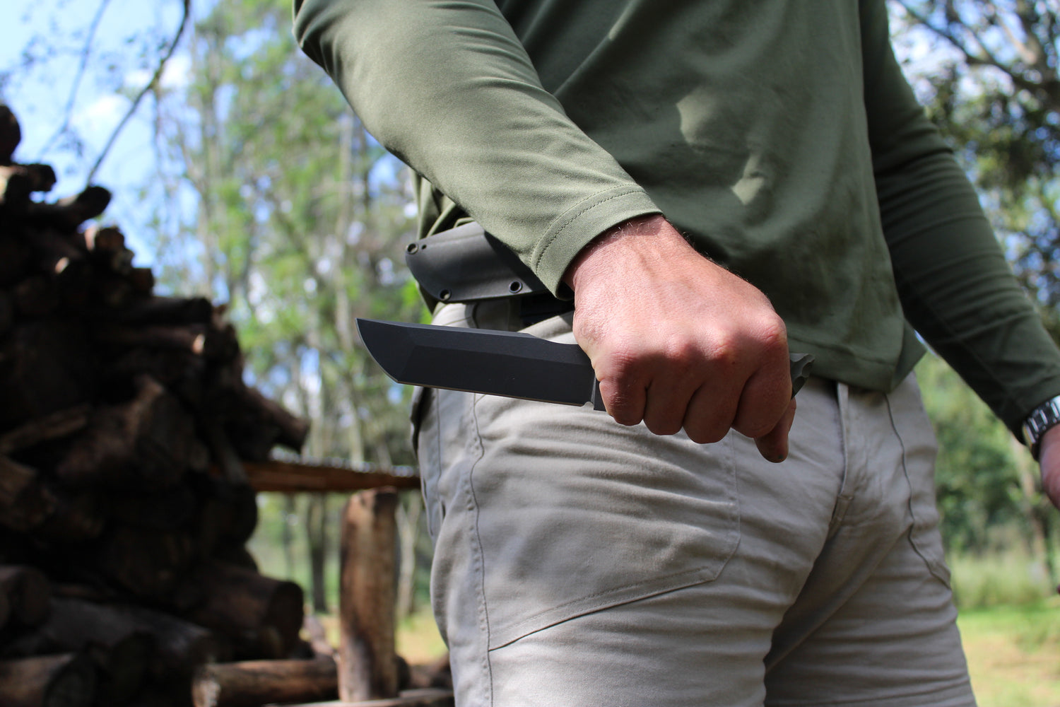 Our Knives are made to last generations. The 6mm thick, high carbon, spring steel blades are not only very hard but also very durable. The scales are made of solid G10 and are mounted with top quality carbon fibre pins. The sheaths are made of kydex that is custom molded to each individual knife so as to ensure good, positive retention so you don’t lose your knife in the field. The full tang handle ensures utmost reliable strength even when batonning wood