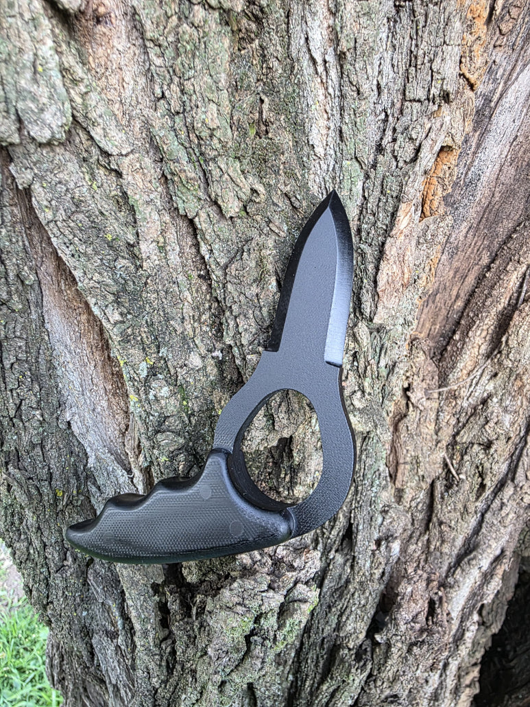 Constructed from solid G10 composite, this dagger maintains all the benefits of its smaller sibling—lightweight, non-magnetic, corrosion-resistant, and completely undetectable to metal detectors—while delivering a more commanding presence in hand.